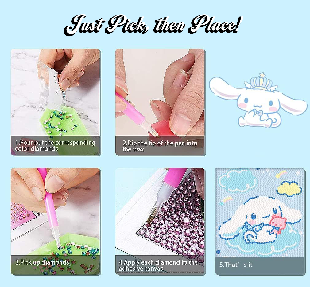 Everything you need is included our set! Paint right away! Pick&Placeβ’ Painting includes 1 point pen, 1 canvas, 1 diamond tray, 1 glue mud, & a beads set for the painting.